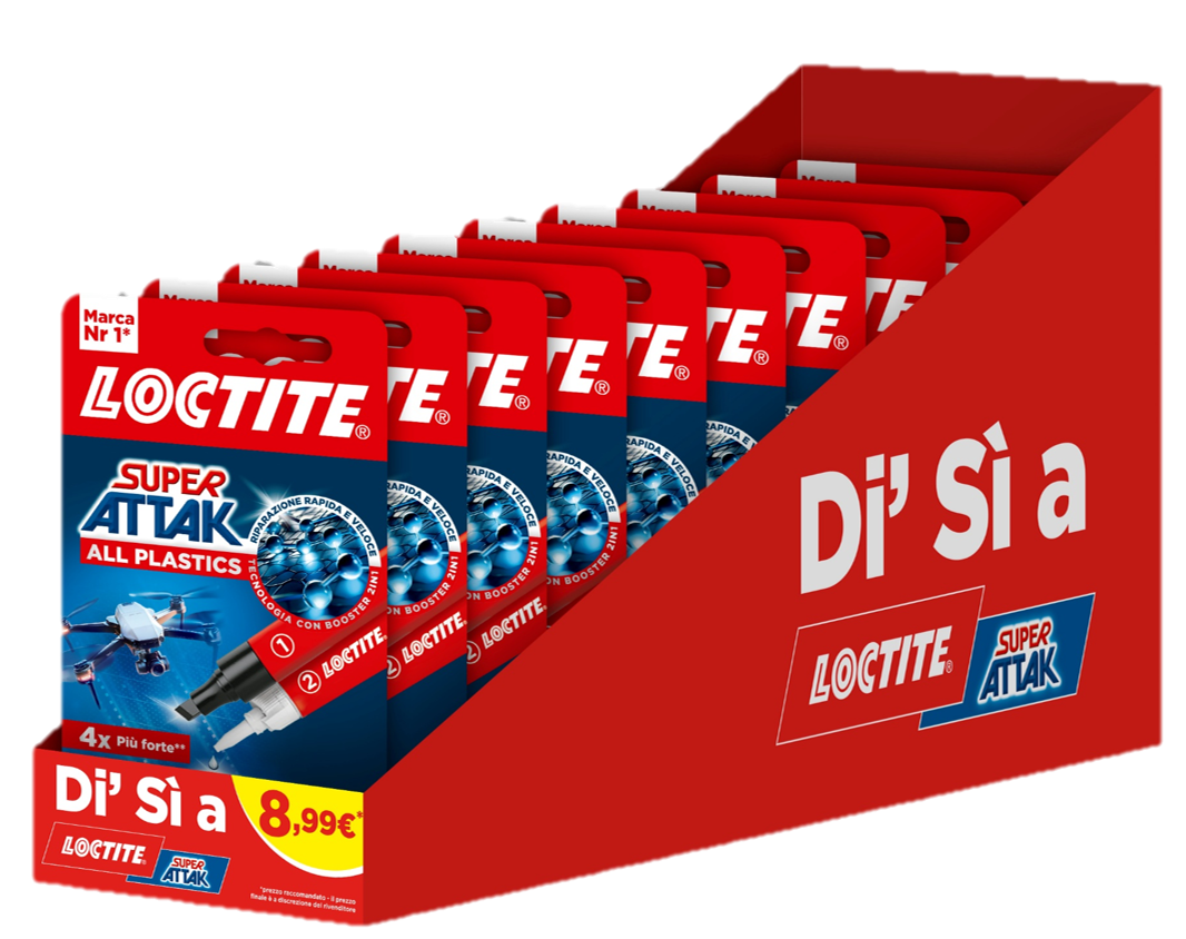| 2973194 | 8004630936397 | LOCTITE SUPER ATTAK ALL PLASTICS - Display | 12 | blister | 2g+4ml |
