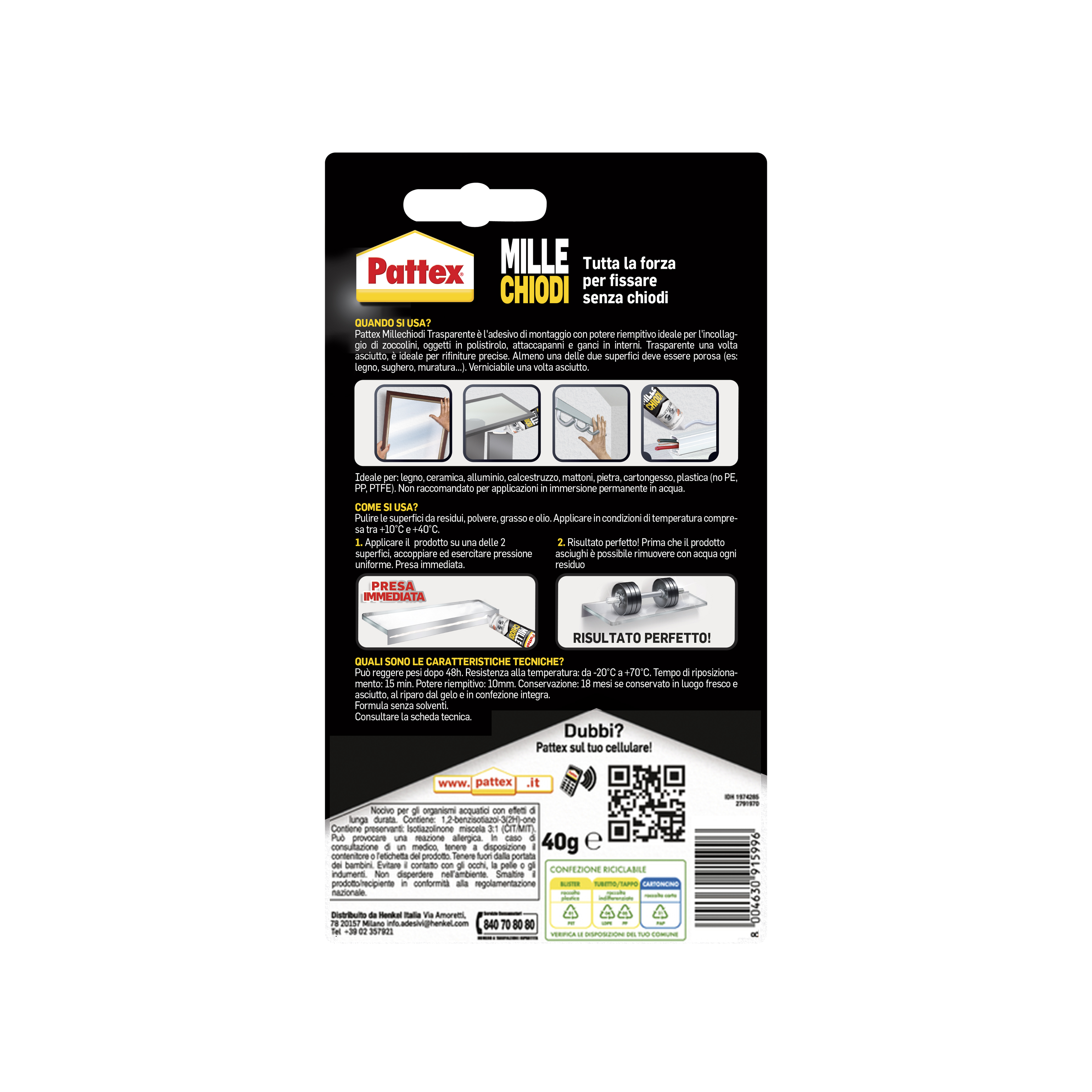 1974285 | 8004630915996 | Pattex Millechiodi blister 40 gr trasparente x12 | 12 | BLISTER | 40 g |